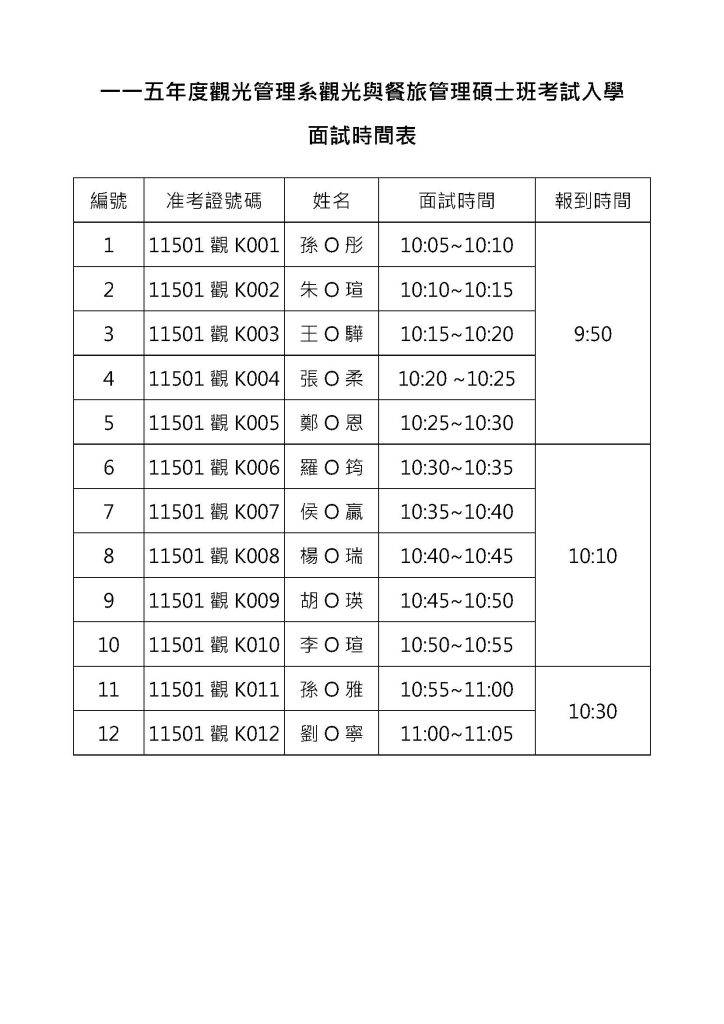 1.考生請依面試時間表【報到時間】到建工校區 行509多功能教室報到,逾時或未報到者視同缺考,面試成績以零分計算。